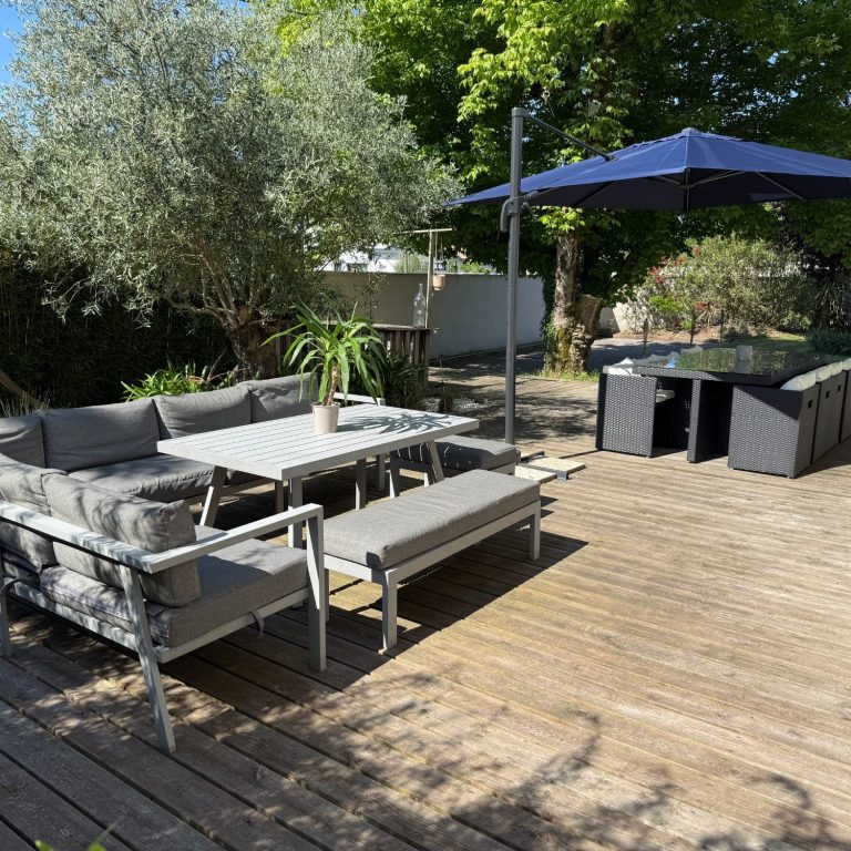 Côté SUD vous profiterez de beaux espaces extérieurs aménagés. Un terrain de pétanque est également proposé.
