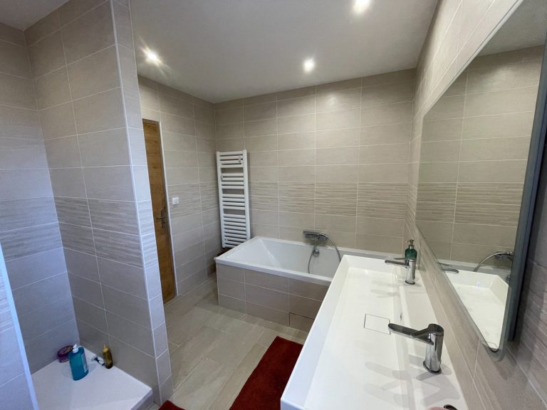 Au premier étage se trouve une salle de bains avec baignoire et douche à l'italienne