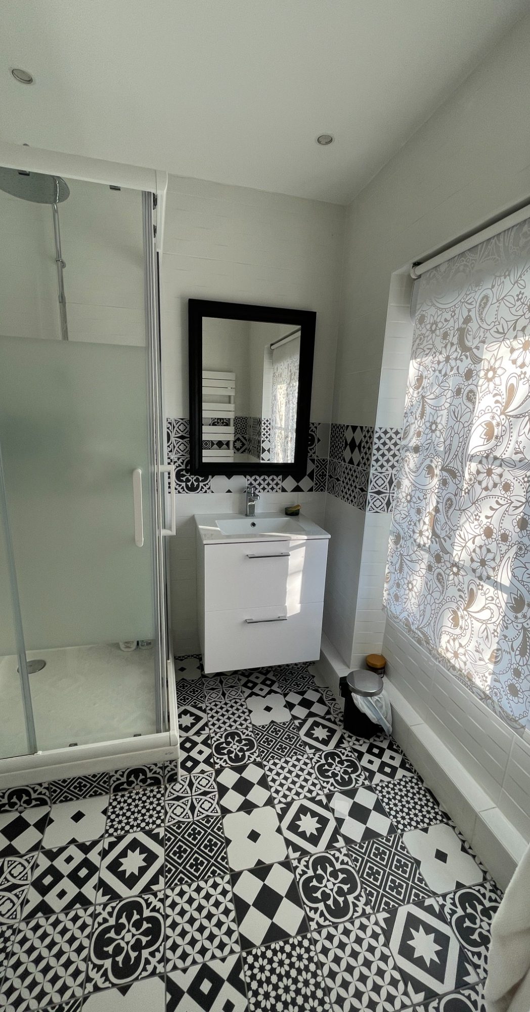 Directement accessible depuis la chambre n°5, cette salle d'eau dispose d'une douche 90x90
